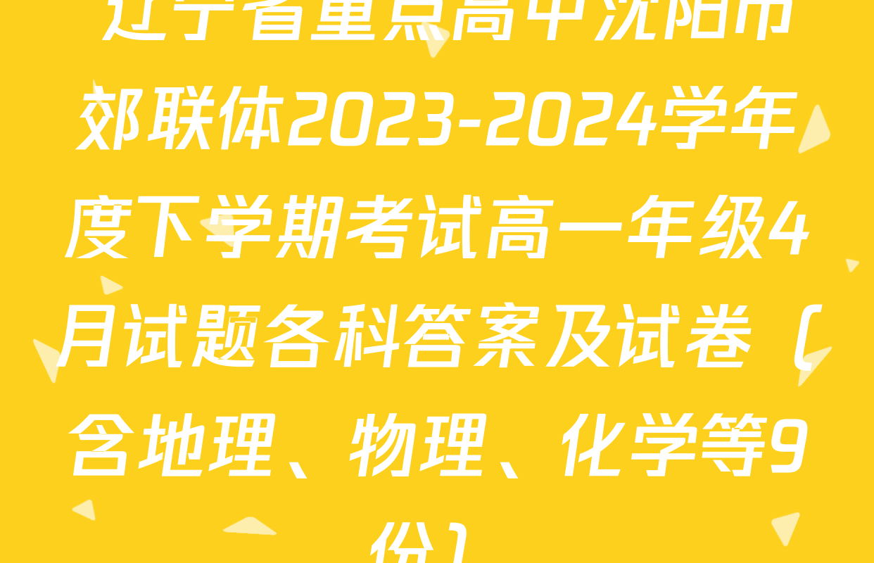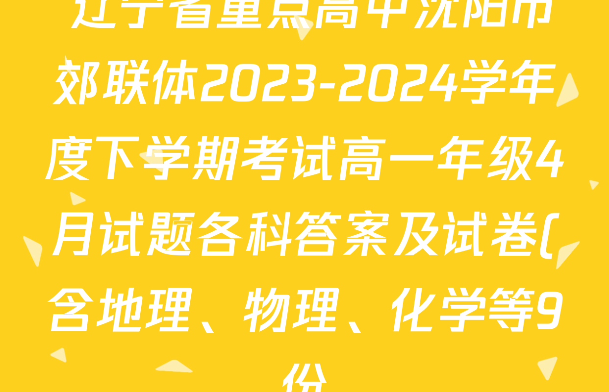 辽宁省重点高中沈阳市郊联体2023-2024学年度下学期考试高一年级4月试题各科答案及试卷(含地理、物理、化学等9份)即将拉开帷幕