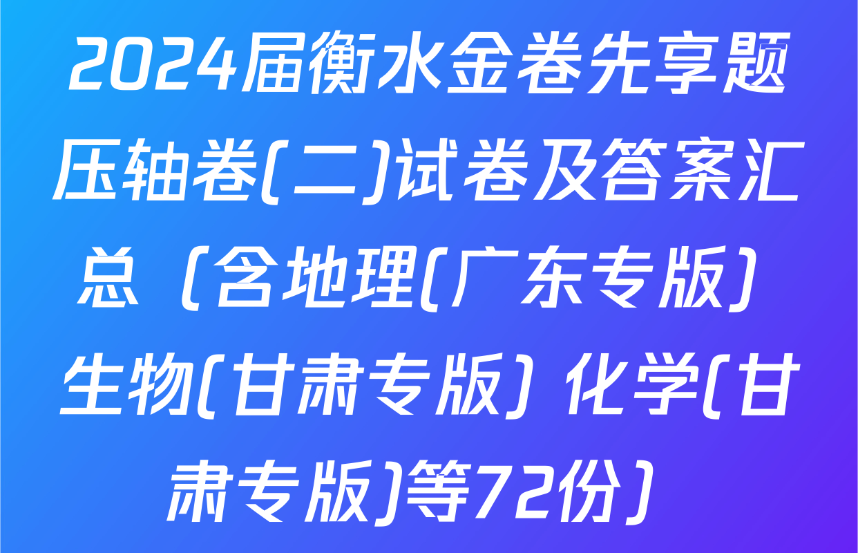 2024届衡水金卷先享题压轴卷(二)试卷及答案汇总(含地理(广东专版) 生物(甘肃专版) 化学(甘肃专版)等72份)
