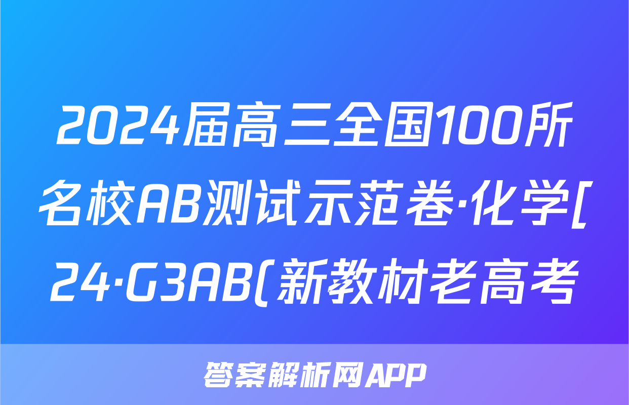 2024届高三全国100所名校AB测试示范卷·化学[24·G3AB(新教材老高考)·化学-SJB-必考-FJ]三试题正在持续更新,目前2026衡水金卷周测卷答案网为大家整理了相关试题及答案,供大家查缺补漏,高效提升成绩。