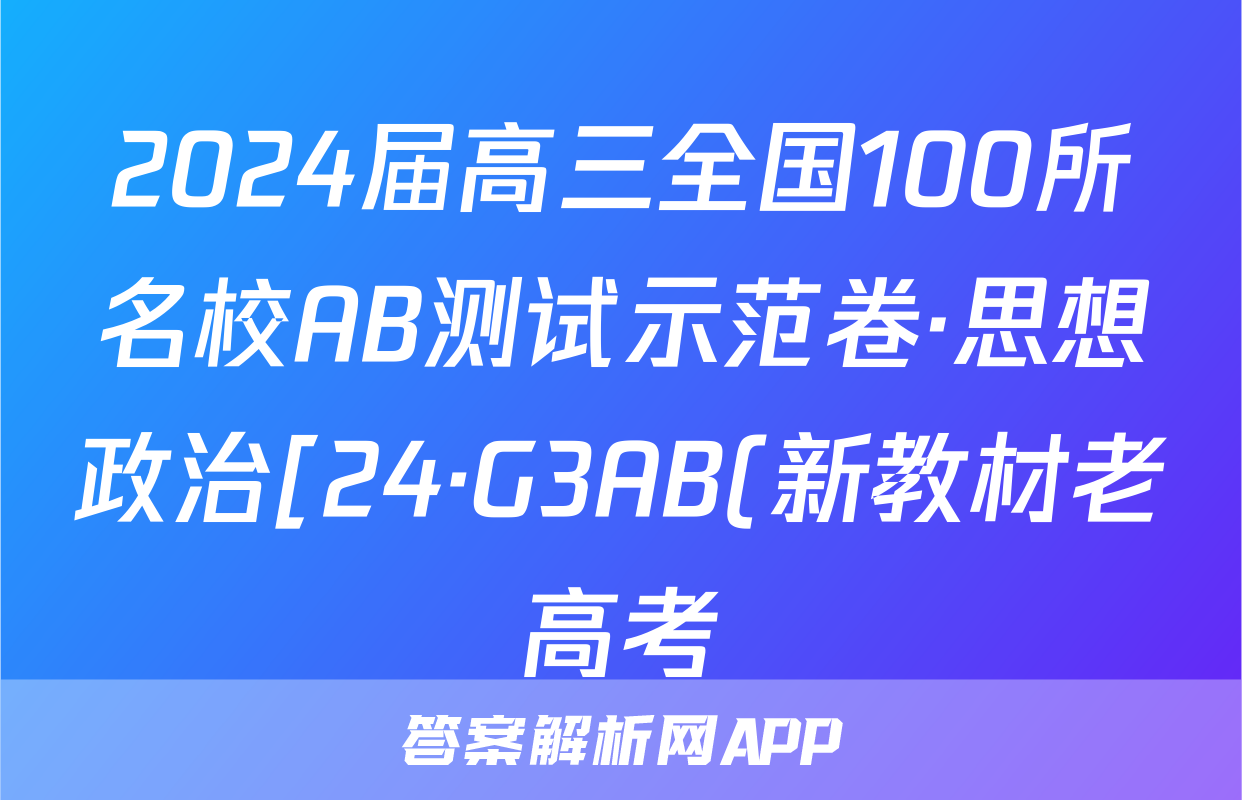2024届高三全国100所名校AB测试示范卷·思想政治[24·G3AB(新教材老高考)·思想政治-R-必考-QGA]二试题正在持续更新,目前2026衡水金卷周测卷答案网为大家整理了相关试题及答案,供大家查缺补漏,高效提升成绩。