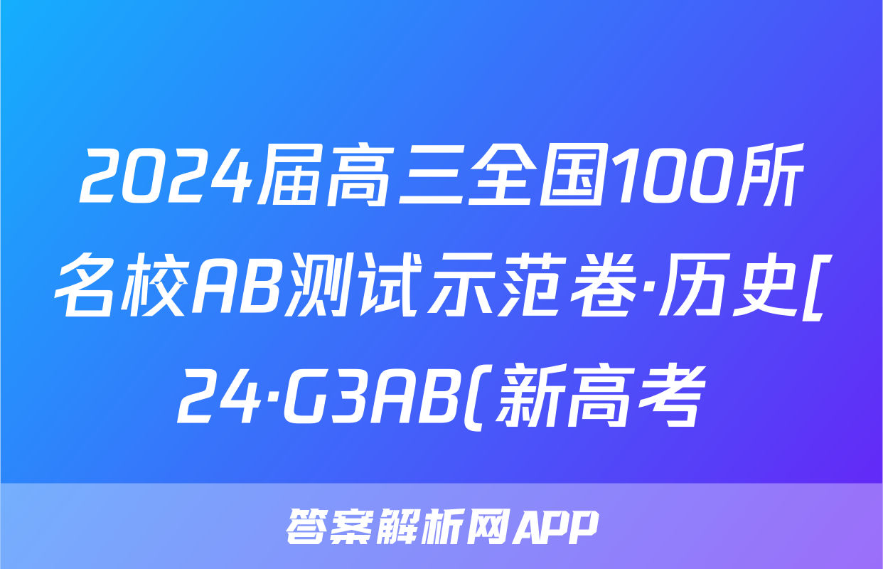 2024届高三全国100所名校AB测试示范卷·历史[24·G3AB(新高考)·历史-R-必考-CQ]五试题正在持续更新,目前2026衡水金卷周测卷答案网为大家整理了相关试题及答案,供大家查缺补漏,高效提升成绩。