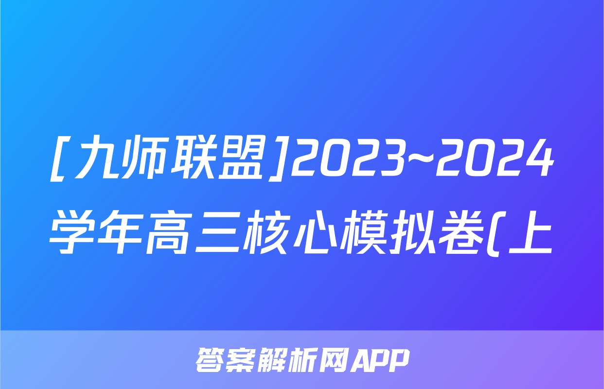 [九师联盟]2023~2024学年高三核心模拟卷(上)·(一)1化学试题正在持续更新,目前2026衡水金卷周测卷答案网为大家整理了相关试题及答案,供大家查缺补漏,高效提升成绩。