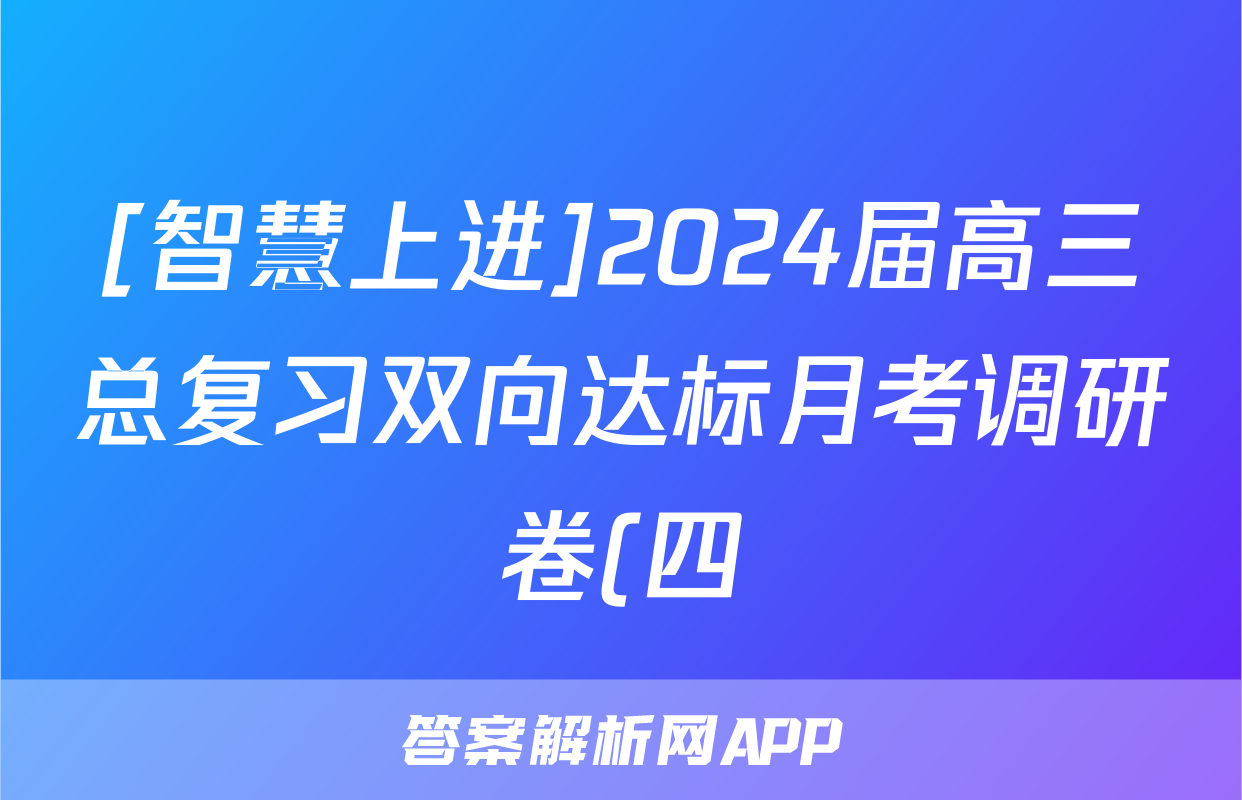 [智慧上进]2024届高三总复习双向达标月考调研卷(四)4数学答案正在持续更新,目前2026衡水金卷周测卷答案网为大家整理了相关试题及答案,供大家查缺补漏,高效提升成绩。
