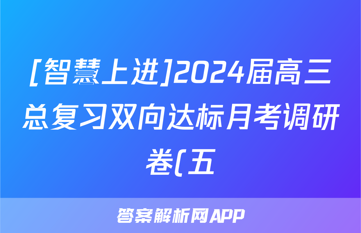 [智慧上进]2024届高三总复习双向达标月考调研卷(五)5化学·ⅠⅠ卷答案正在持续更新,目前2026衡水金卷周测卷答案网为大家整理了相关试题及答案,供大家查缺补漏,高效提升成绩。