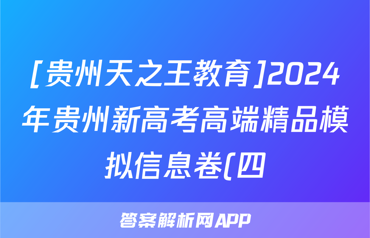 [贵州天之王教育]2024年贵州新高考高端精品模拟信息卷(四)4地理答案正在持续更新,目前2026衡水金卷周测卷答案网为大家整理了相关试题及答案,供大家查缺补漏,高效提升成绩。