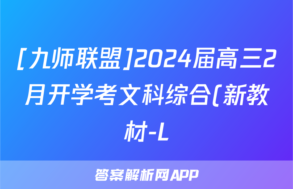 [九师联盟]2024届高三2月开学考文科综合(新教材-L)答案正在持续更新,目前2026衡水金卷周测卷答案网为大家整理了相关试题及答案,供大家查缺补漏,高效提升成绩。