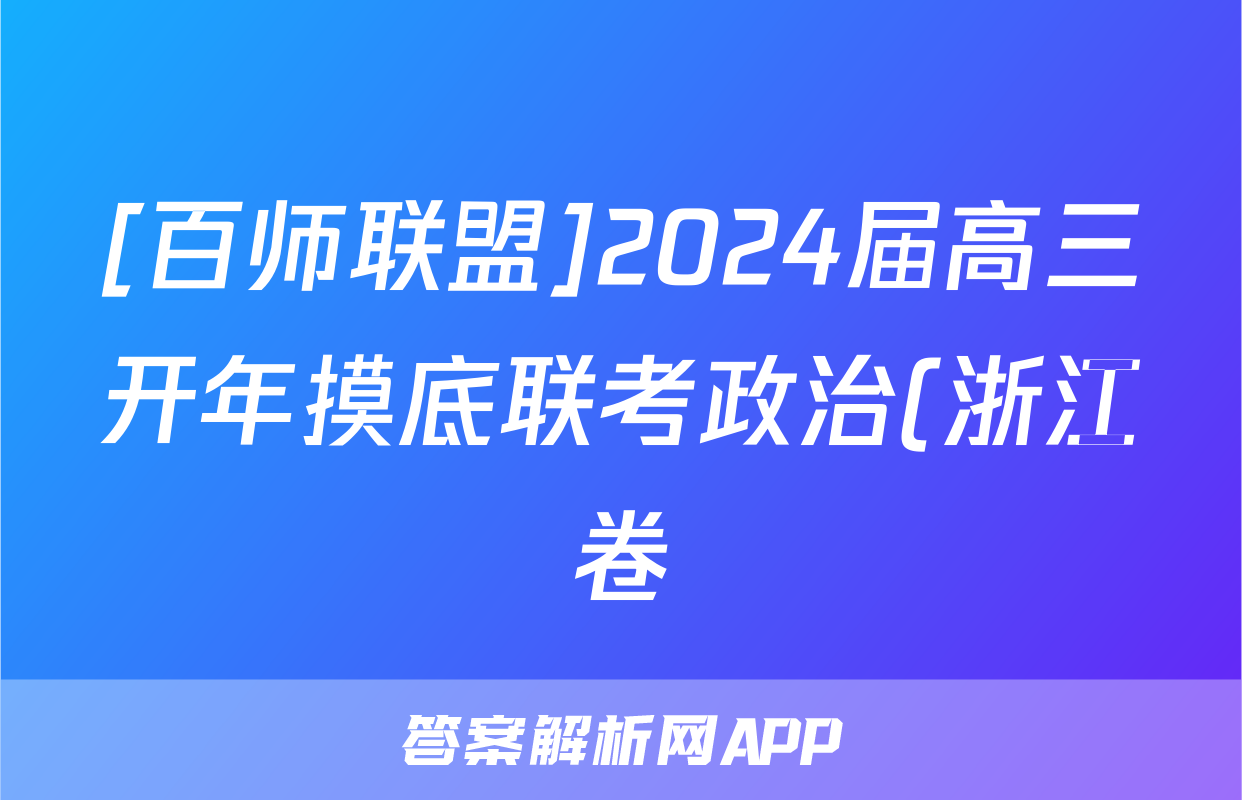 [百师联盟]2024届高三开年摸底联考政治(浙江卷)答案正在持续更新,目前2026衡水金卷周测卷答案网为大家整理了相关试题及答案,供大家查缺补漏,高效提升成绩。