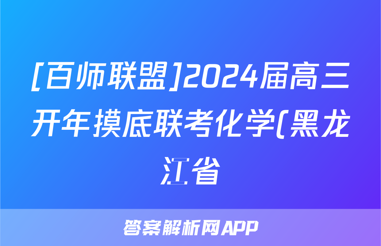 [百师联盟]2024届高三开年摸底联考化学(黑龙江省)答案正在持续更新,目前2026衡水金卷周测卷答案网为大家整理了相关试题及答案,供大家查缺补漏,高效提升成绩。