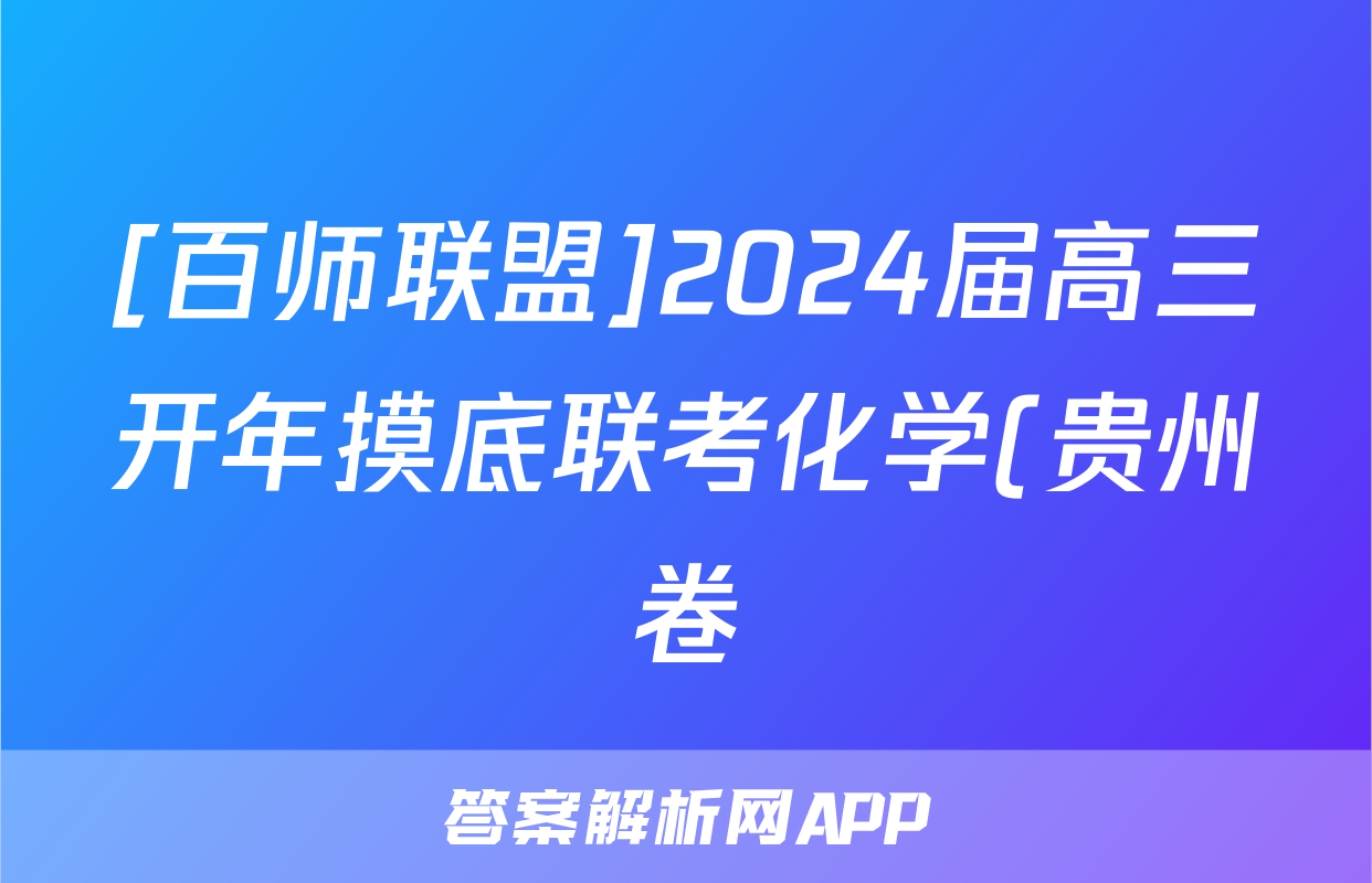 [百师联盟]2024届高三开年摸底联考化学(贵州卷)答案正在持续更新,目前2026衡水金卷周测卷答案网为大家整理了相关试题及答案,供大家查缺补漏,高效提升成绩。