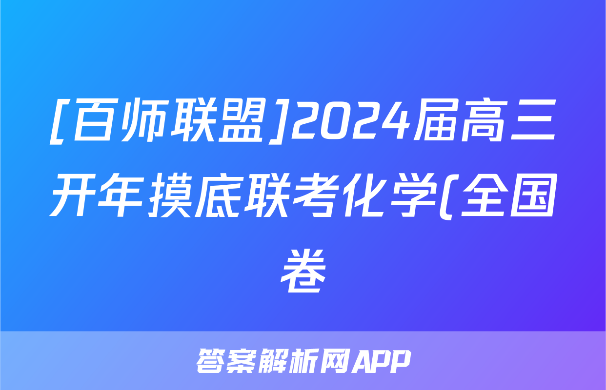 [百师联盟]2024届高三开年摸底联考化学(全国卷)答案正在持续更新,目前2026衡水金卷周测卷答案网为大家整理了相关试题及答案,供大家查缺补漏,高效提升成绩。