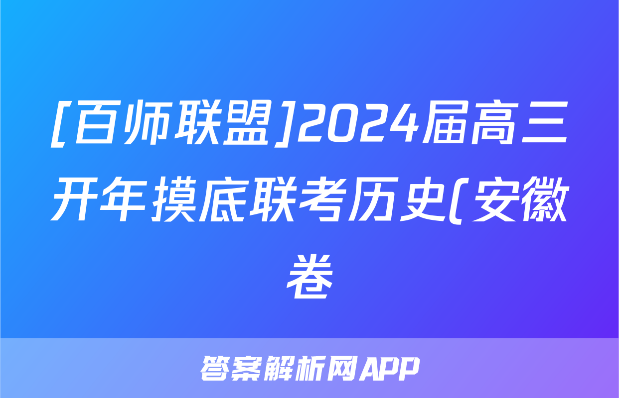 [百师联盟]2024届高三开年摸底联考历史(安徽卷)答案正在持续更新,目前2026衡水金卷周测卷答案网为大家整理了相关试题及答案,供大家查缺补漏,高效提升成绩。