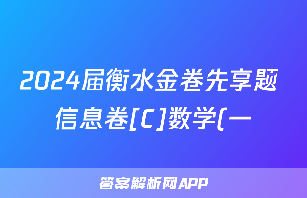 2024届衡水金卷先享题 信息卷[C]数学(一)1答案正在持续更新,目前2026衡水金卷周测卷答案网为大家整理了相关试题及答案,供大家查缺补漏,高效提升成绩。