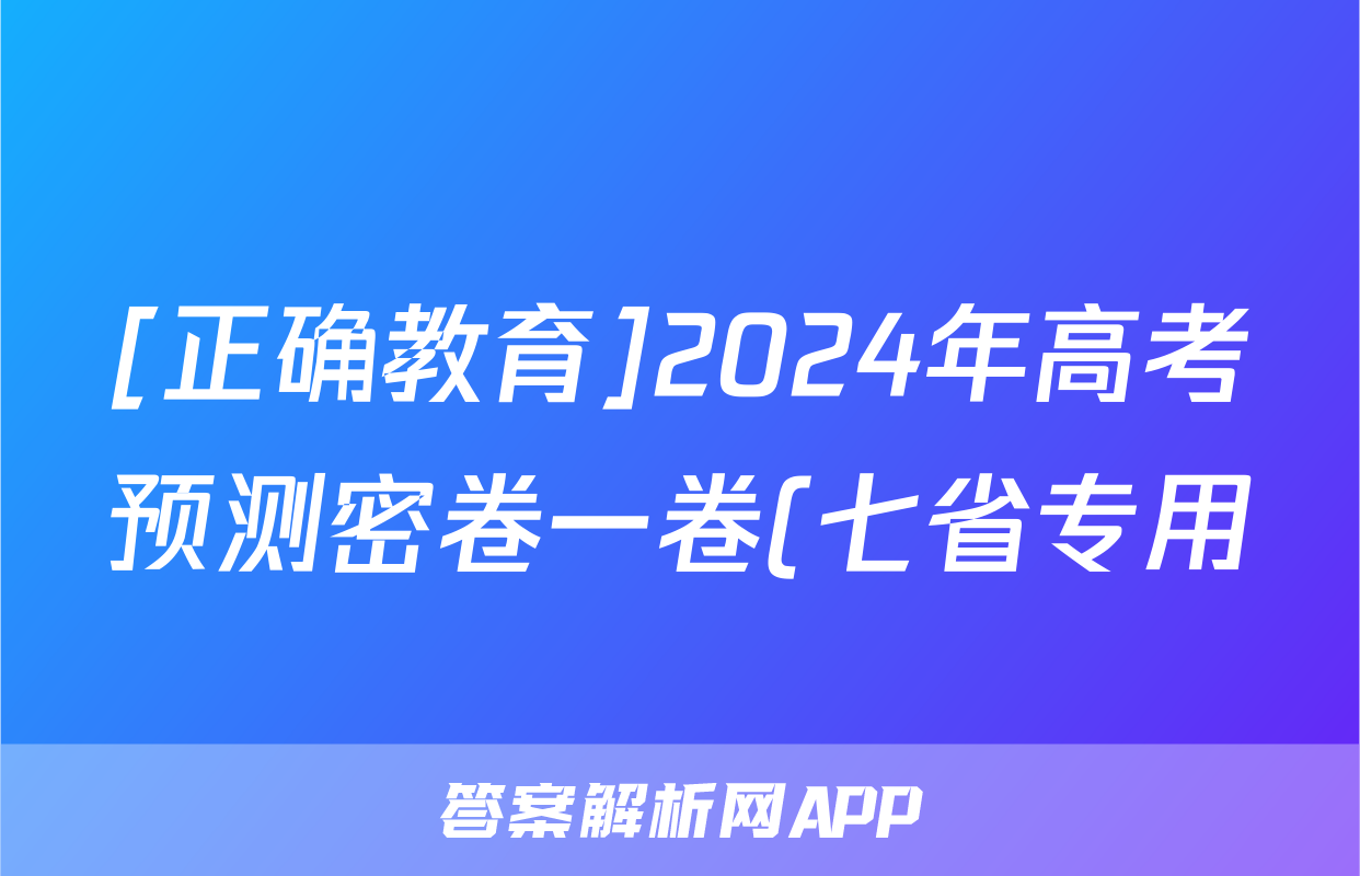 [正确教育]2024年高考预测密卷一卷(七省专用)化学(七省)试题正在持续更新,目前2026衡水金卷周测卷答案网为大家整理了相关试题及答案,供大家查缺补漏,高效提升成绩。