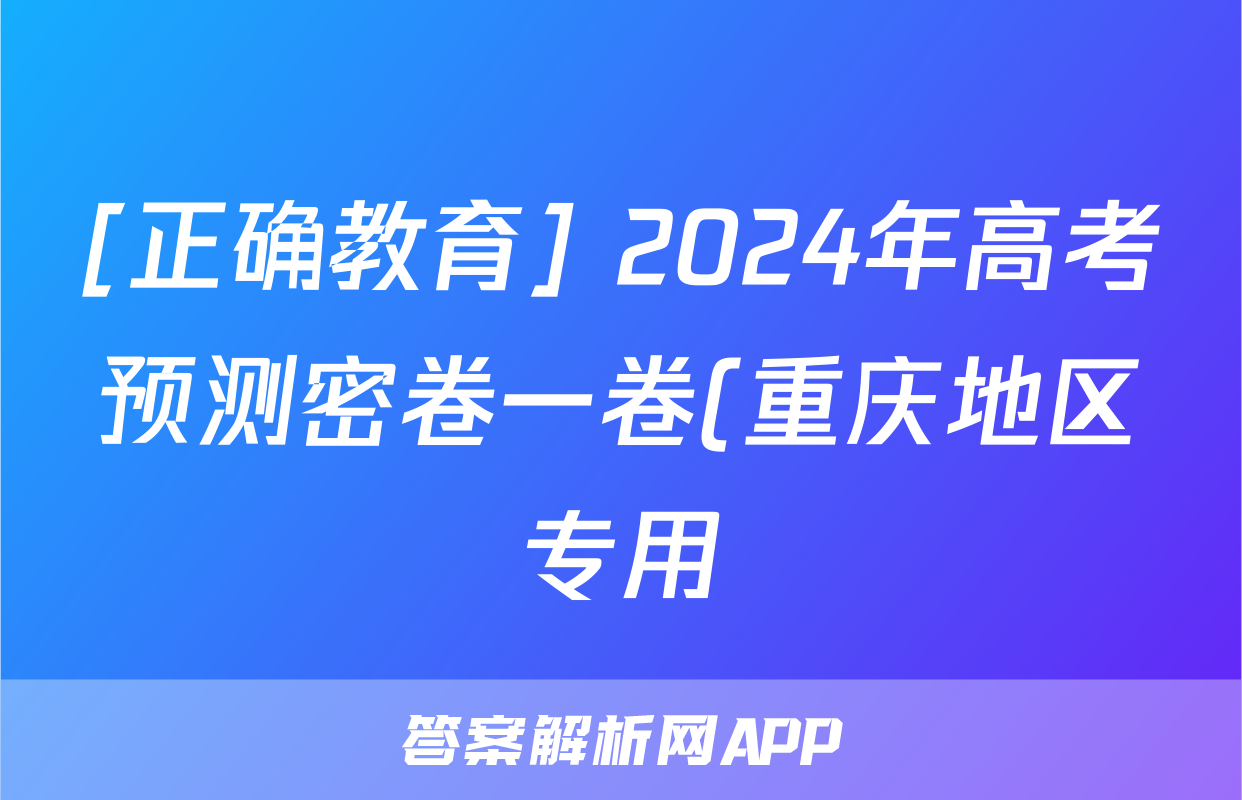 [正确教育] 2024年高考预测密卷一卷(重庆地区专用)地理答案正在持续更新,目前2026衡水金卷周测卷答案网为大家整理了相关试题及答案,供大家查缺补漏,高效提升成绩。