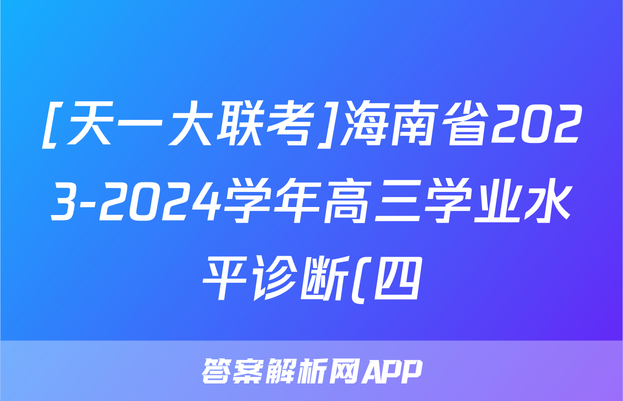 [天一大联考]海南省2023-2024学年高三学业水平诊断(四)4试题(数学)正在持续更新,目前2026衡水金卷周测卷答案网为大家整理了相关试题及答案,供大家查缺补漏,高效提升成绩。
