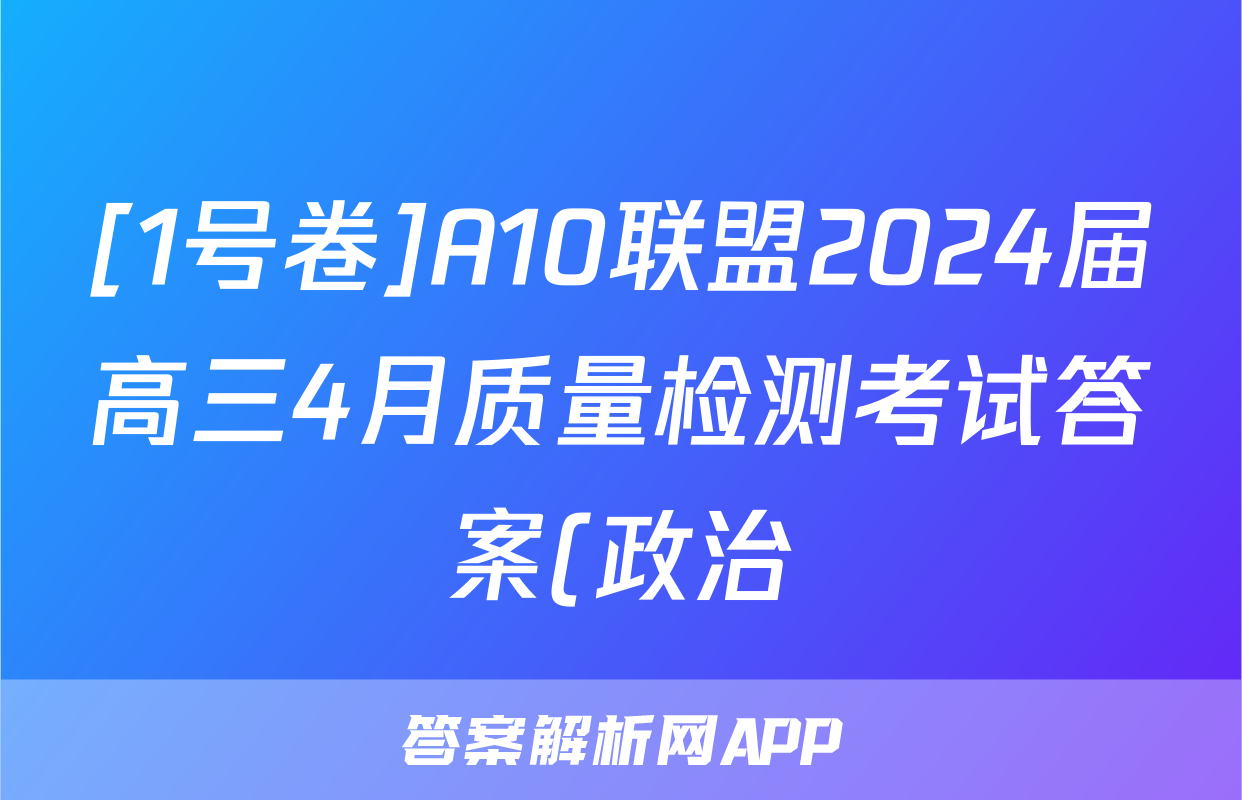 [1号卷]A10联盟2024届高三4月质量检测考试答案(政治)正在持续更新,目前2026衡水金卷周测卷答案网为大家整理了相关试题及答案,供大家查缺补漏,高效提升成绩。