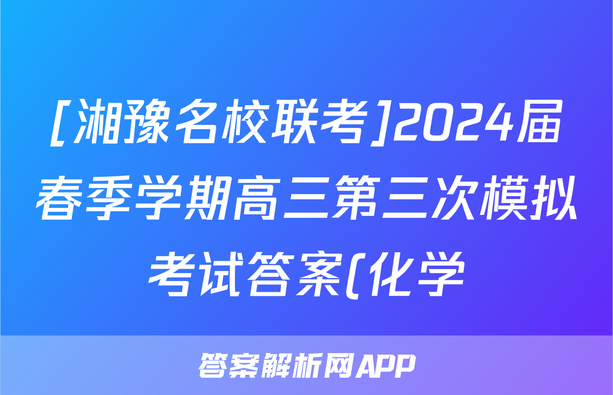 [湘豫名校联考]2024届春季学期高三第三次模拟考试答案(化学)正在持续更新,目前2026衡水金卷周测卷答案网为大家整理了相关试题及答案,供大家查缺补漏,高效提升成绩。
