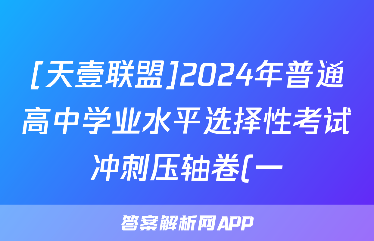 [天壹联盟]2024年普通高中学业水平选择性考试冲刺压轴卷(一)1答案(地理)正在持续更新,目前2026衡水金卷周测卷答案网为大家整理了相关试题及答案,供大家查缺补漏,高效提升成绩。