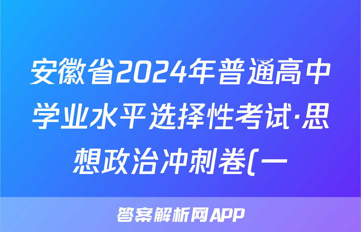 安徽省2024年普通高中学业水平选择性考试·思想政治冲刺卷(一)1[24·(新高考)CCJ·思想政治·AH]答案正在持续更新,目前2026衡水金卷周测卷答案网为大家整理了相关试题及答案,供大家查缺补漏,高效提升成绩。