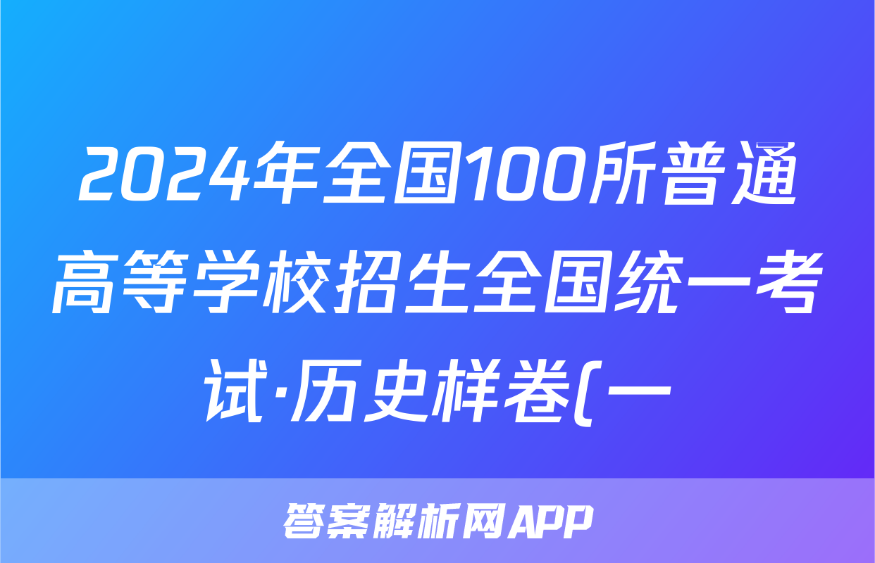 2024年全国100所普通高等学校招生全国统一考试·历史样卷(一)1[24·(新高考)高考样卷·历史·Y]试题正在持续更新,目前2026衡水金卷周测卷答案网为大家整理了相关试题及答案,供大家查缺补漏,高效提升成绩。
