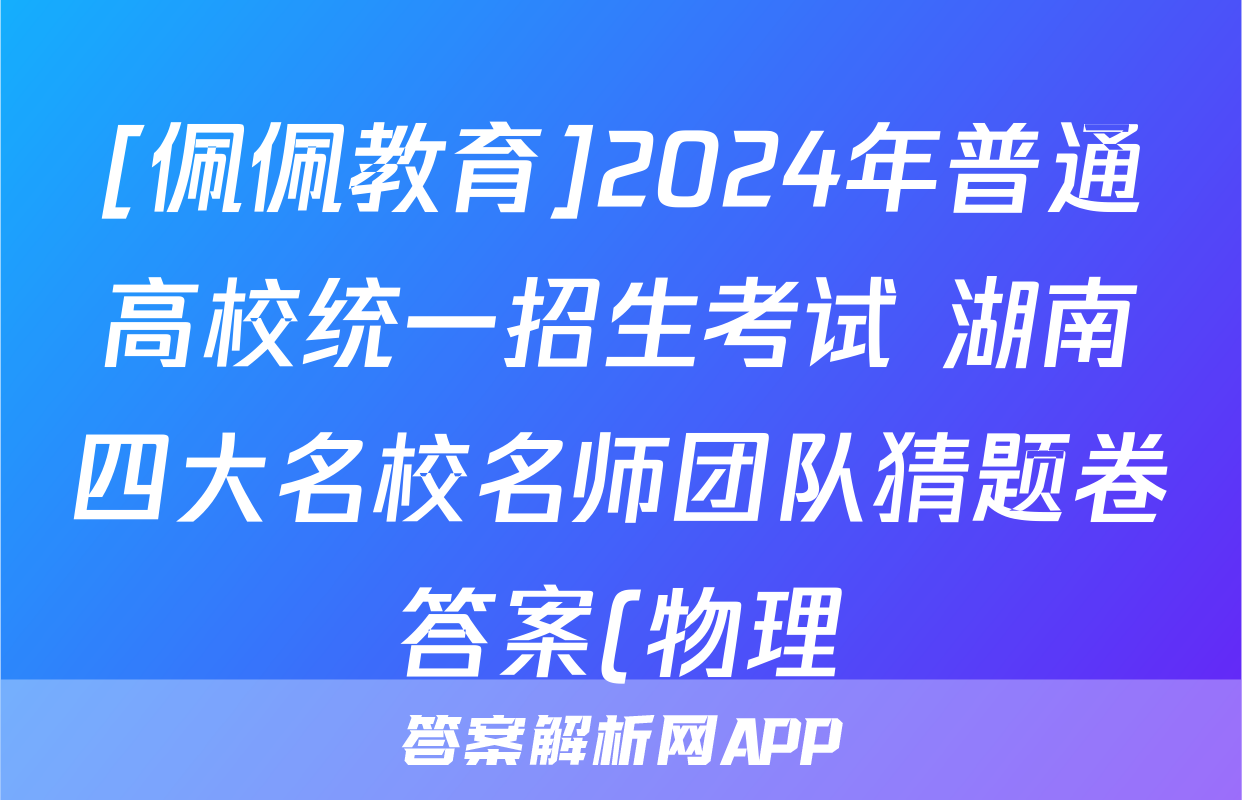 [佩佩教育]2024年普通高校统一招生考试 湖南四大名校名师团队猜题卷答案(物理)正在持续更新,目前2026衡水金卷周测卷答案网为大家整理了相关试题及答案,供大家查缺补漏,高效提升成绩。
