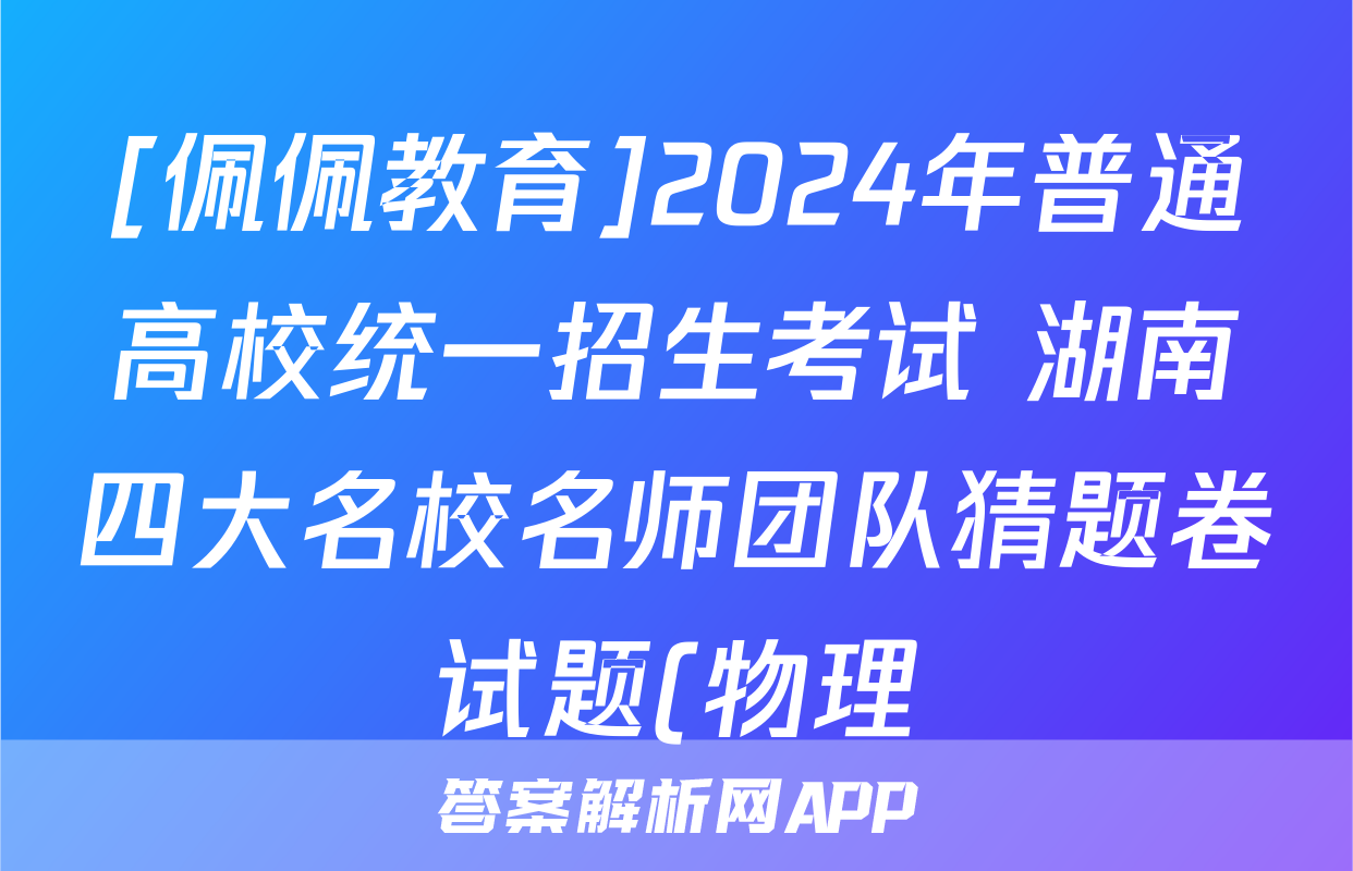 [佩佩教育]2024年普通高校统一招生考试 湖南四大名校名师团队猜题卷试题(物理)正在持续更新,目前2026衡水金卷周测卷答案网为大家整理了相关试题及答案,供大家查缺补漏,高效提升成绩。