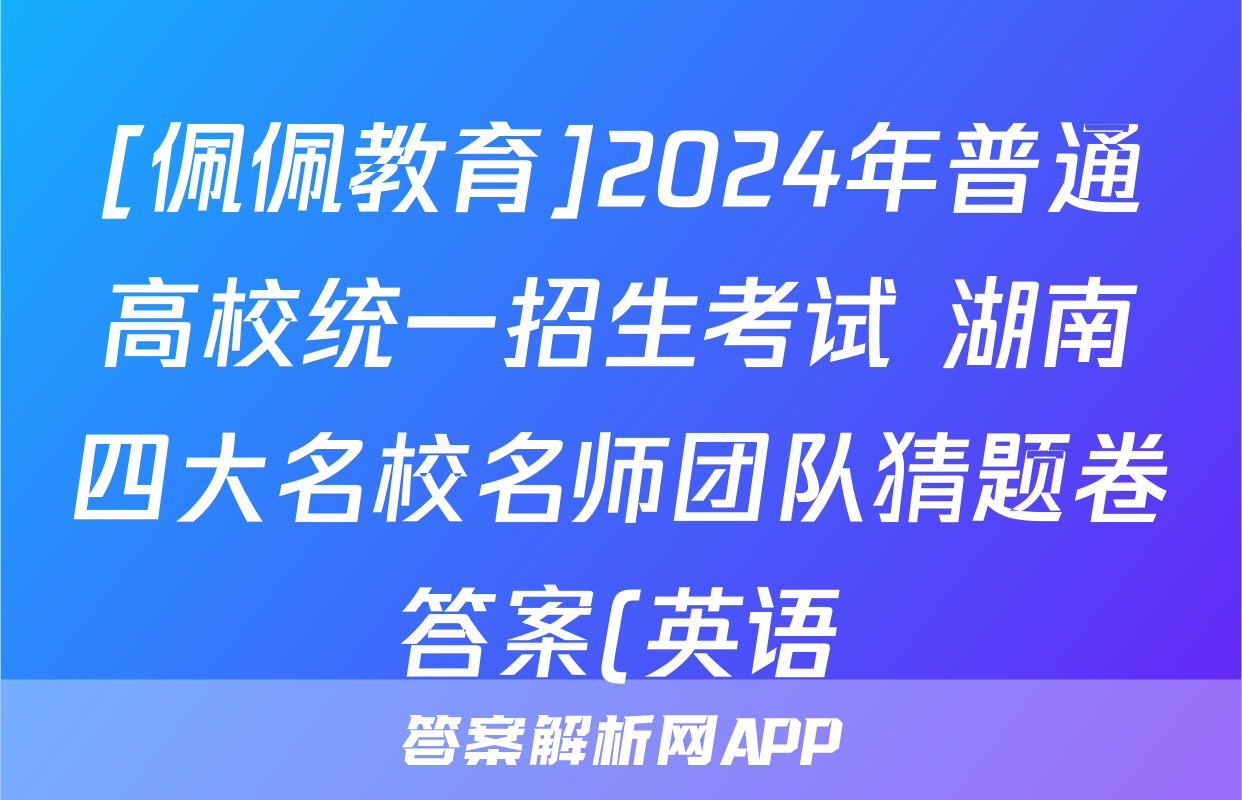 [佩佩教育]2024年普通高校统一招生考试 湖南四大名校名师团队猜题卷答案(英语)正在持续更新,目前2026衡水金卷周测卷答案网为大家整理了相关试题及答案,供大家查缺补漏,高效提升成绩。