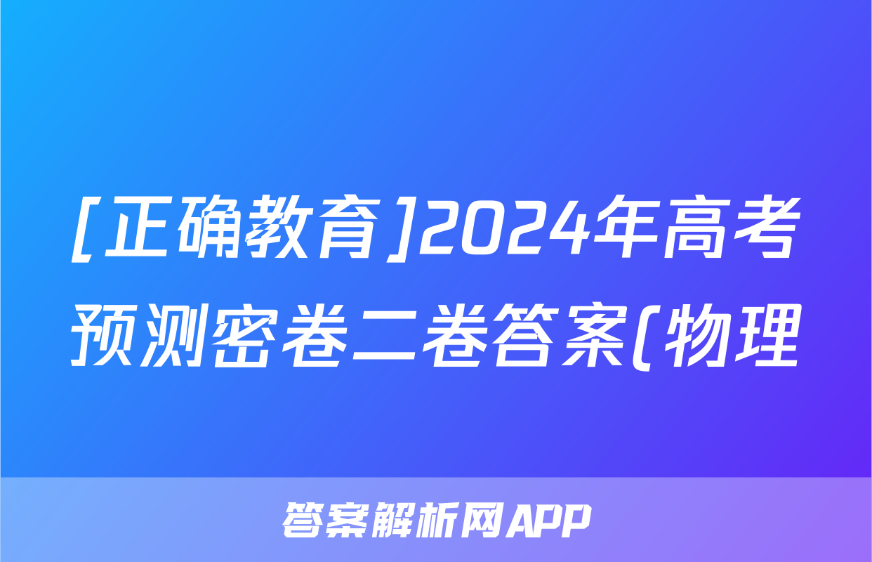 [正确教育]2024年高考预测密卷二卷答案(物理)正在持续更新,目前2026衡水金卷周测卷答案网为大家整理了相关试题及答案,供大家查缺补漏,高效提升成绩。