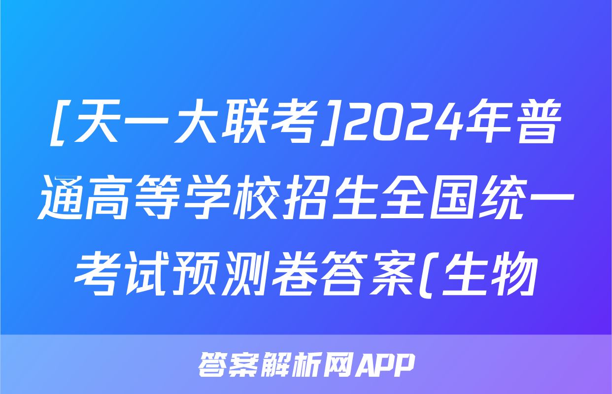 [天一大联考]2024年普通高等学校招生全国统一考试预测卷答案(生物)正在持续更新,目前2026衡水金卷周测卷答案网为大家整理了相关试题及答案,供大家查缺补漏,高效提升成绩。