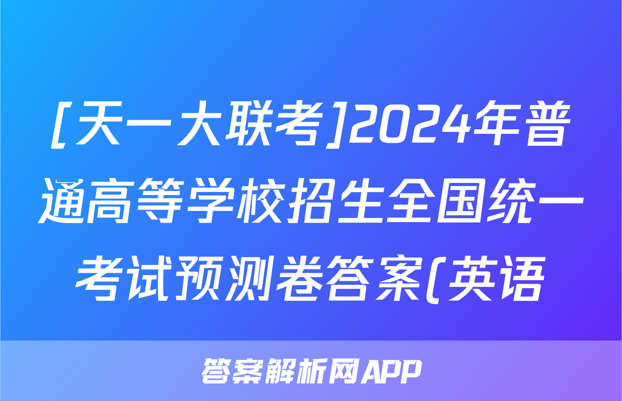 [天一大联考]2024年普通高等学校招生全国统一考试预测卷答案(英语)正在持续更新,目前2026衡水金卷周测卷答案网为大家整理了相关试题及答案,供大家查缺补漏,高效提升成绩。