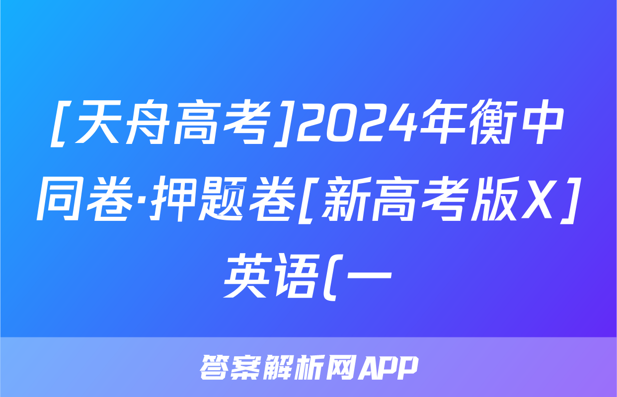 [天舟高考]2024年衡中同卷·押题卷[新高考版X]英语(一)1答案正在持续更新,目前2026衡水金卷周测卷答案网为大家整理了相关试题及答案,供大家查缺补漏,高效提升成绩。