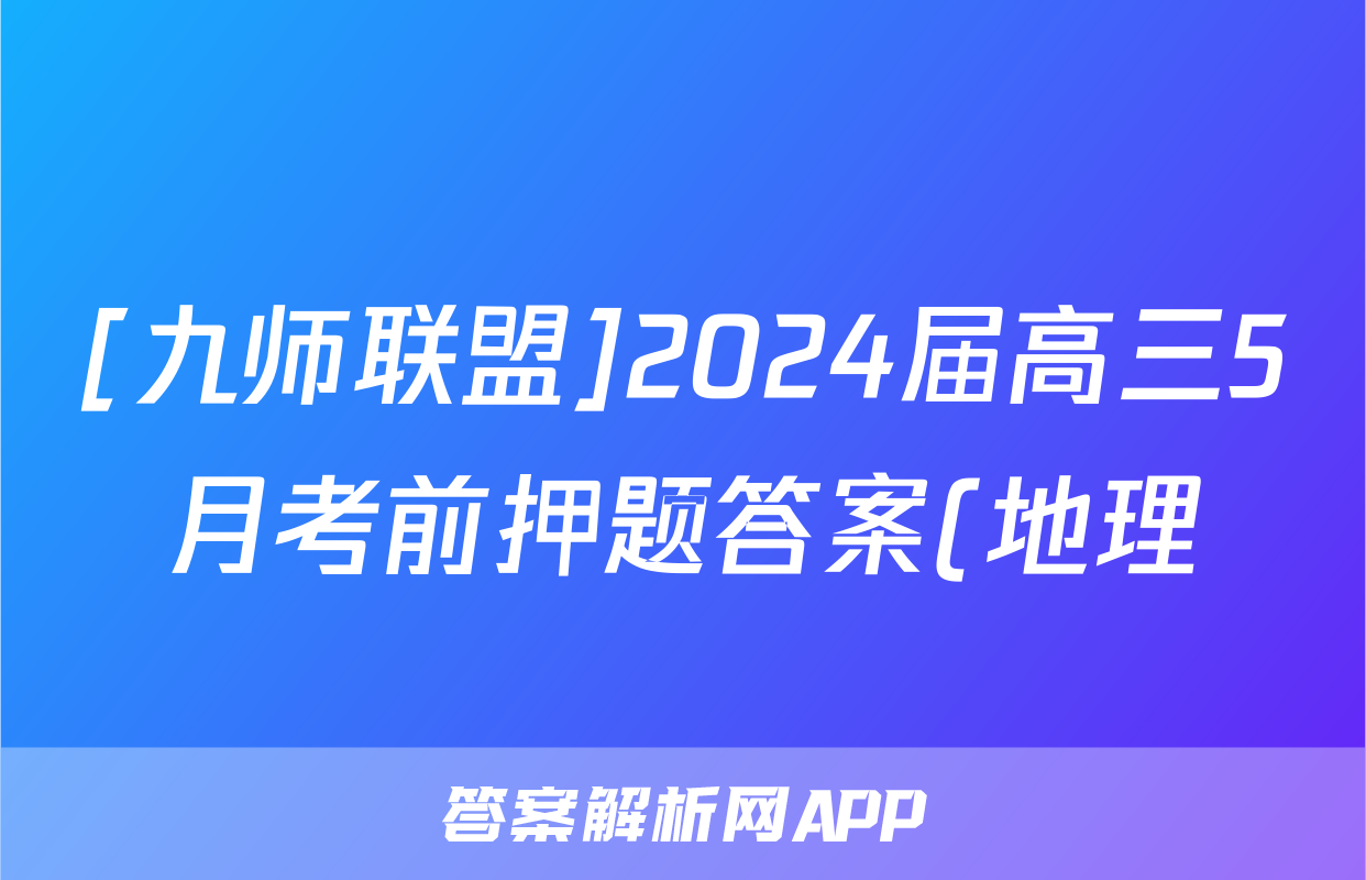 [九师联盟]2024届高三5月考前押题答案(地理)正在持续更新,目前2026衡水金卷周测卷答案网为大家整理了相关试题及答案,供大家查缺补漏,高效提升成绩。