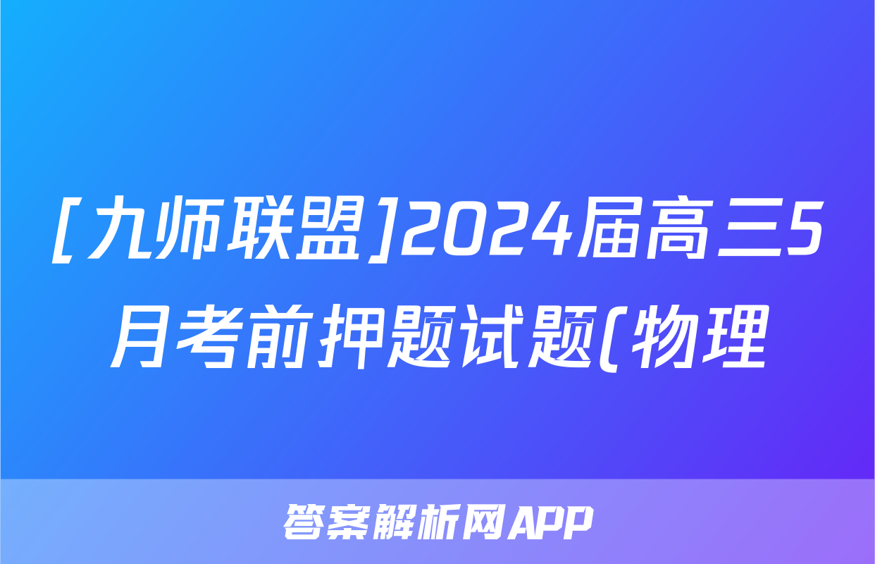 [九师联盟]2024届高三5月考前押题试题(物理)正在持续更新,目前2026衡水金卷周测卷答案网为大家整理了相关试题及答案,供大家查缺补漏,高效提升成绩。