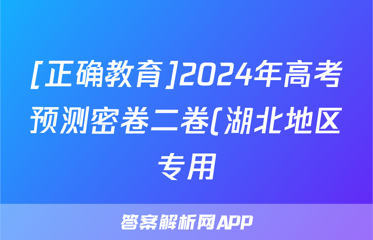 [正确教育]2024年高考预测密卷二卷(湖北地区专用)政治(湖北)试题正在持续更新,目前2026衡水金卷周测卷答案网为大家整理了相关试题及答案,供大家查缺补漏,高效提升成绩。