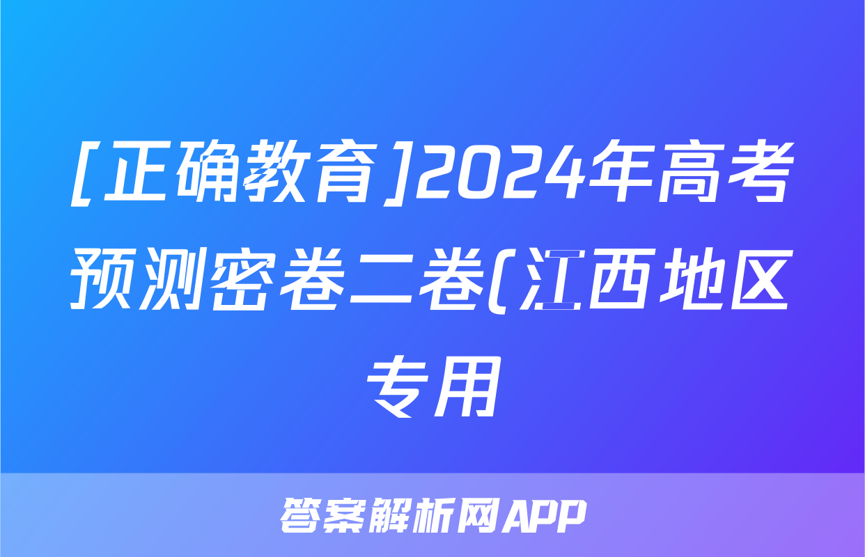 [正确教育]2024年高考预测密卷二卷(江西地区专用)历史(江西)试题正在持续更新,目前2026衡水金卷周测卷答案网为大家整理了相关试题及答案,供大家查缺补漏,高效提升成绩。