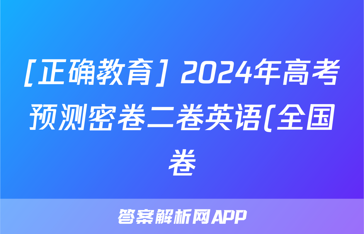 [正确教育] 2024年高考预测密卷二卷英语(全国卷)试题正在持续更新,目前2026衡水金卷周测卷答案网为大家整理了相关试题及答案,供大家查缺补漏,高效提升成绩。
