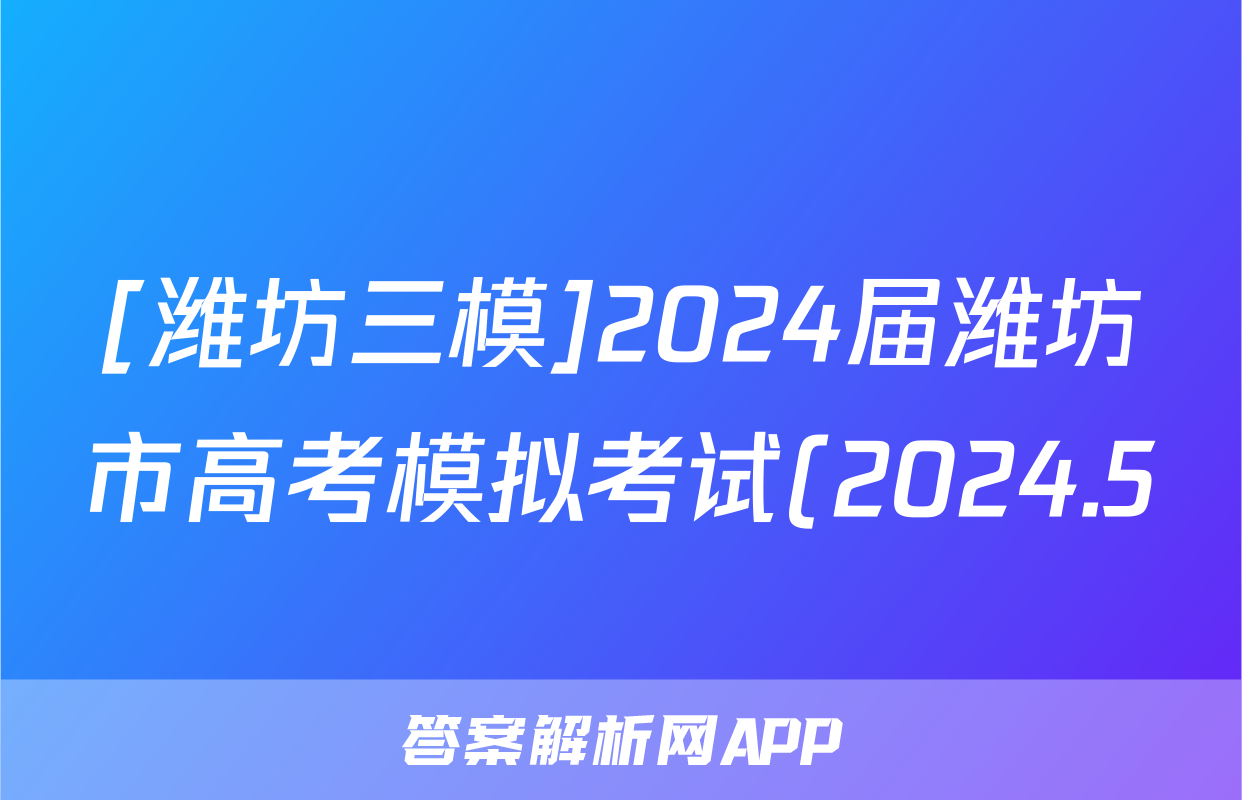 [潍坊三模]2024届潍坊市高考模拟考试(2024.5)化学答案正在持续更新,目前2026衡水金卷周测卷答案网为大家整理了相关试题及答案,供大家查缺补漏,高效提升成绩。