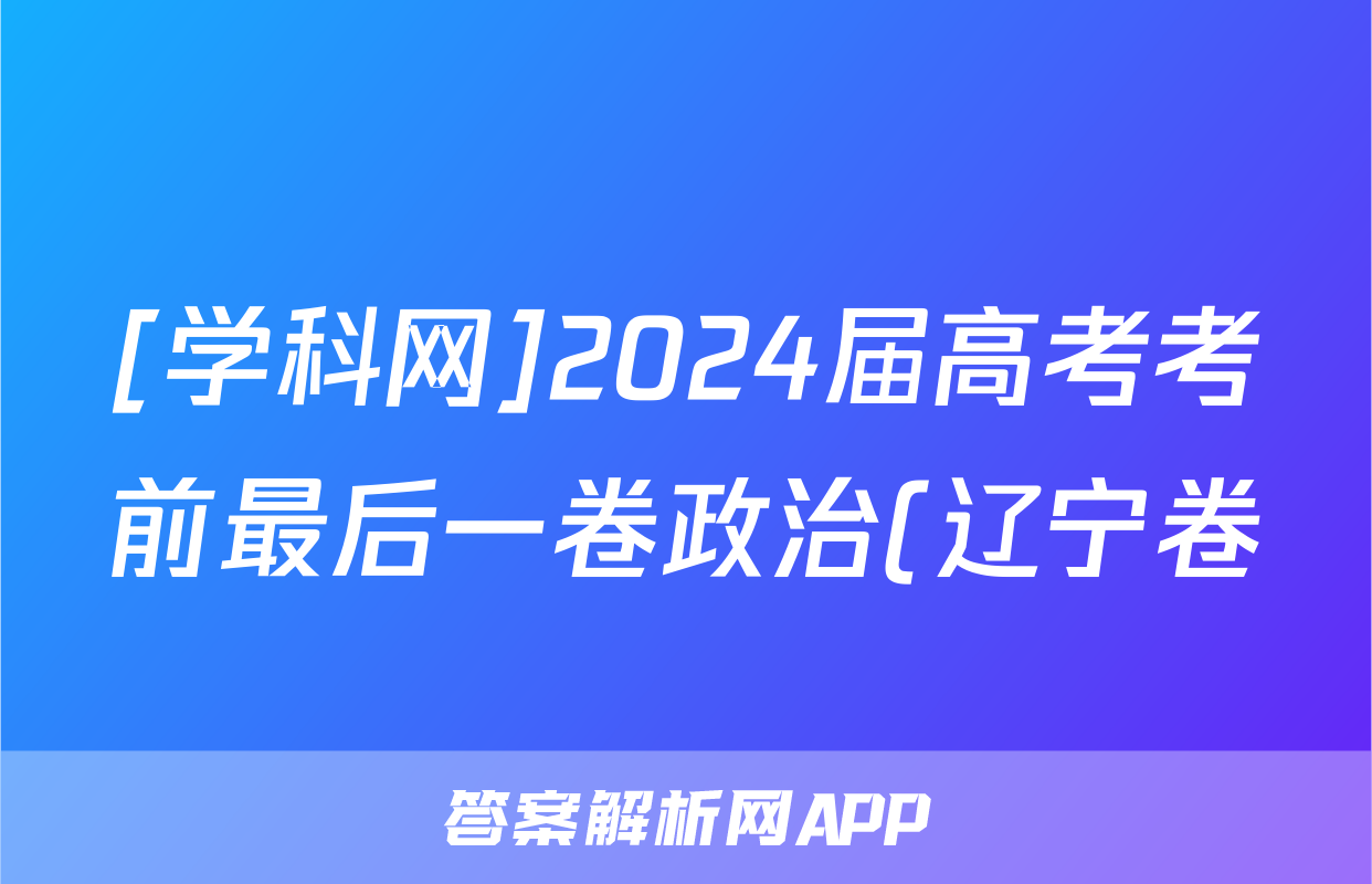 [学科网]2024届高考考前最后一卷政治(辽宁卷)试题正在持续更新,目前2026衡水金卷周测卷答案网为大家整理了相关试题及答案,供大家查缺补漏,高效提升成绩。