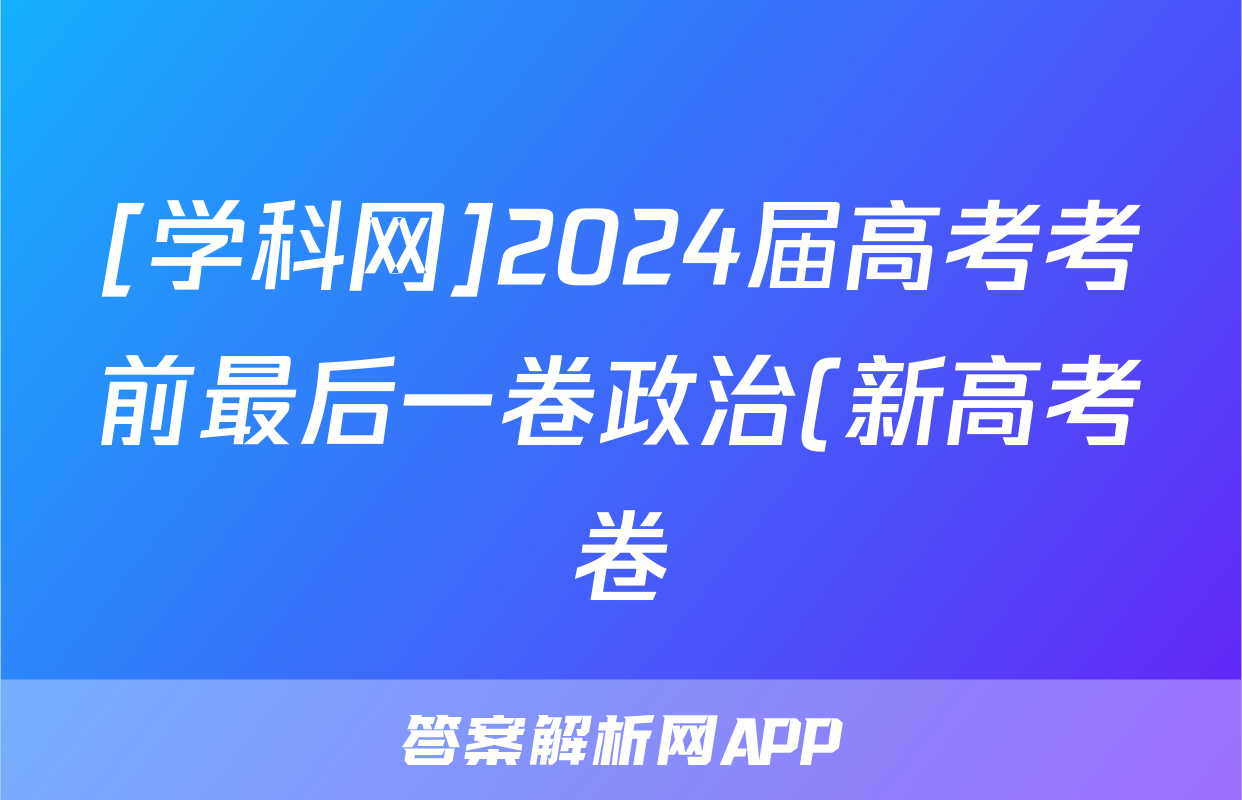 [学科网]2024届高考考前最后一卷政治(新高考卷)(新教材)答案正在持续更新,目前2026衡水金卷周测卷答案网为大家整理了相关试题及答案,供大家查缺补漏,高效提升成绩。