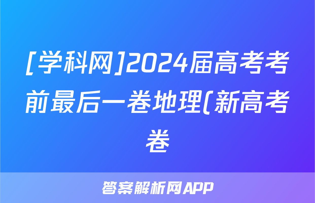 [学科网]2024届高考考前最后一卷地理(新高考卷)(新教材)答案正在持续更新,目前2026衡水金卷周测卷答案网为大家整理了相关试题及答案,供大家查缺补漏,高效提升成绩。