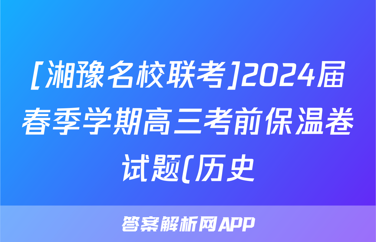 [湘豫名校联考]2024届春季学期高三考前保温卷试题(历史)正在持续更新,目前2026衡水金卷周测卷答案网为大家整理了相关试题及答案,供大家查缺补漏,高效提升成绩。