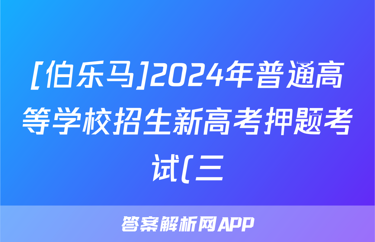 [伯乐马]2024年普通高等学校招生新高考押题考试(三)3答案(英语)正在持续更新,目前2026衡水金卷周测卷答案网为大家整理了相关试题及答案,供大家查缺补漏,高效提升成绩。