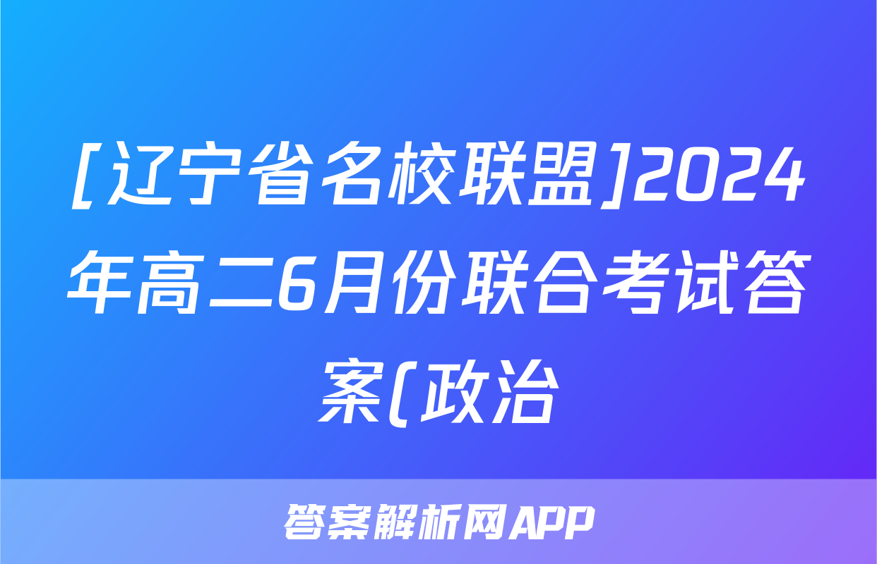 [辽宁省名校联盟]2024年高二6月份联合考试答案(政治)正在持续更新,目前2026衡水金卷周测卷答案网为大家整理了相关试题及答案,供大家查缺补漏,高效提升成绩。