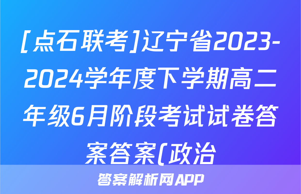 [点石联考]辽宁省2023-2024学年度下学期高二年级6月阶段考试试卷答案答案(政治)正在持续更新,目前2026衡水金卷周测卷答案网为大家整理了相关试题及答案,供大家查缺补漏,高效提升成绩。