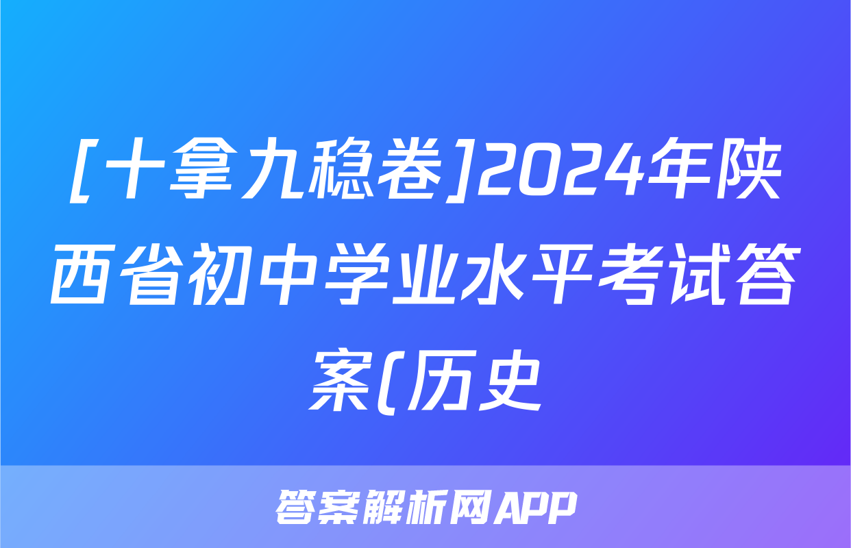 [十拿九稳卷]2024年陕西省初中学业水平考试答案(历史)正在持续更新,目前2026衡水金卷周测卷答案网为大家整理了相关试题及答案,供大家查缺补漏,高效提升成绩。