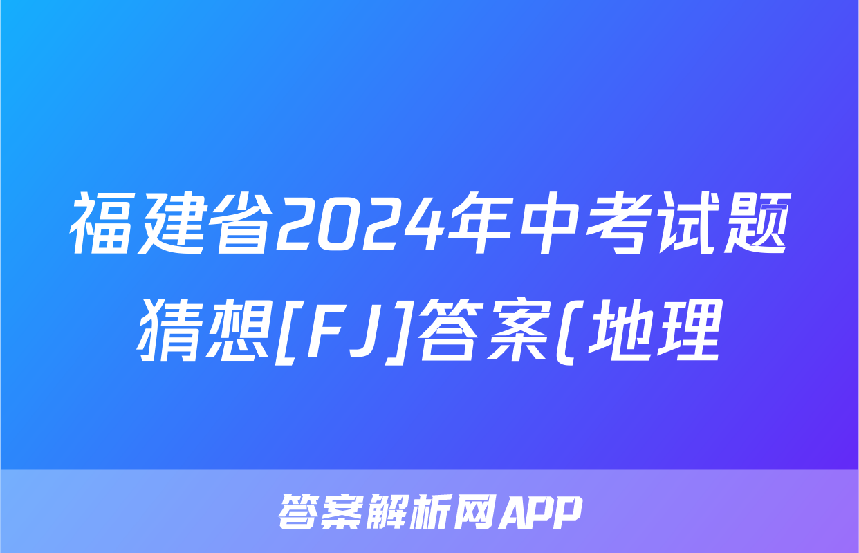 福建省2024年中考试题猜想[FJ]答案(地理)正在持续更新,目前2026衡水金卷周测卷答案网为大家整理了相关试题及答案,供大家查缺补漏,高效提升成绩。