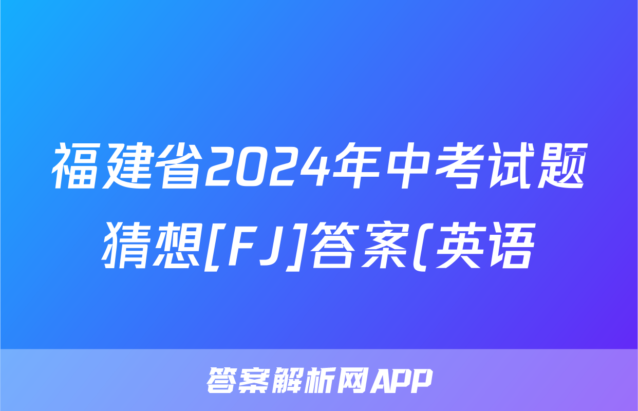 福建省2024年中考试题猜想[FJ]答案(英语)正在持续更新,目前2026衡水金卷周测卷答案网为大家整理了相关试题及答案,供大家查缺补漏,高效提升成绩。