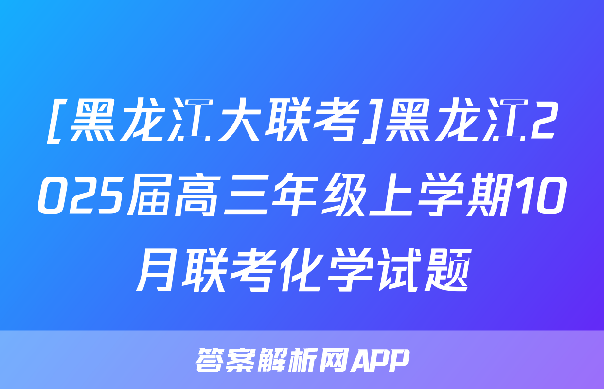 [黑龙江大联考]黑龙江2025届高三年级上学期10月联考化学试题正在持续更新,目前2026衡水金卷周测卷答案网为大家整理了相关试题及答案,供大家查缺补漏,高效提升成绩。